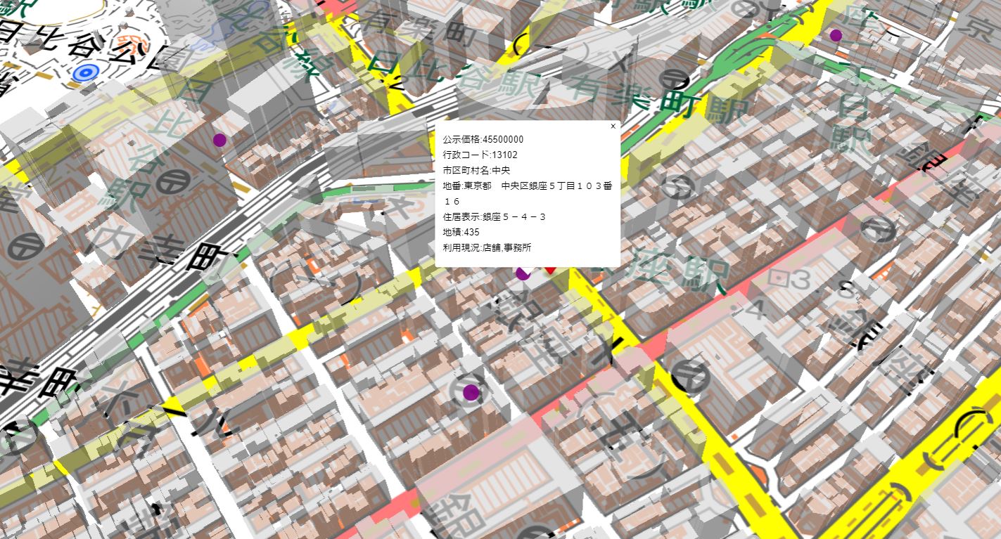 WebMAP国土数値情報ダウンロードサービスの地価公示データをプロットしてみました。