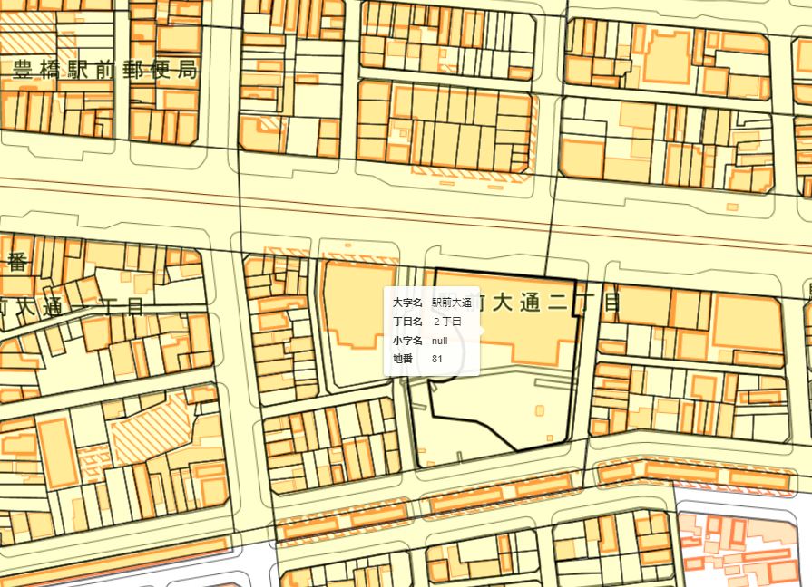 HTMLは地物をヒットすると、属性ポップアップ表示
