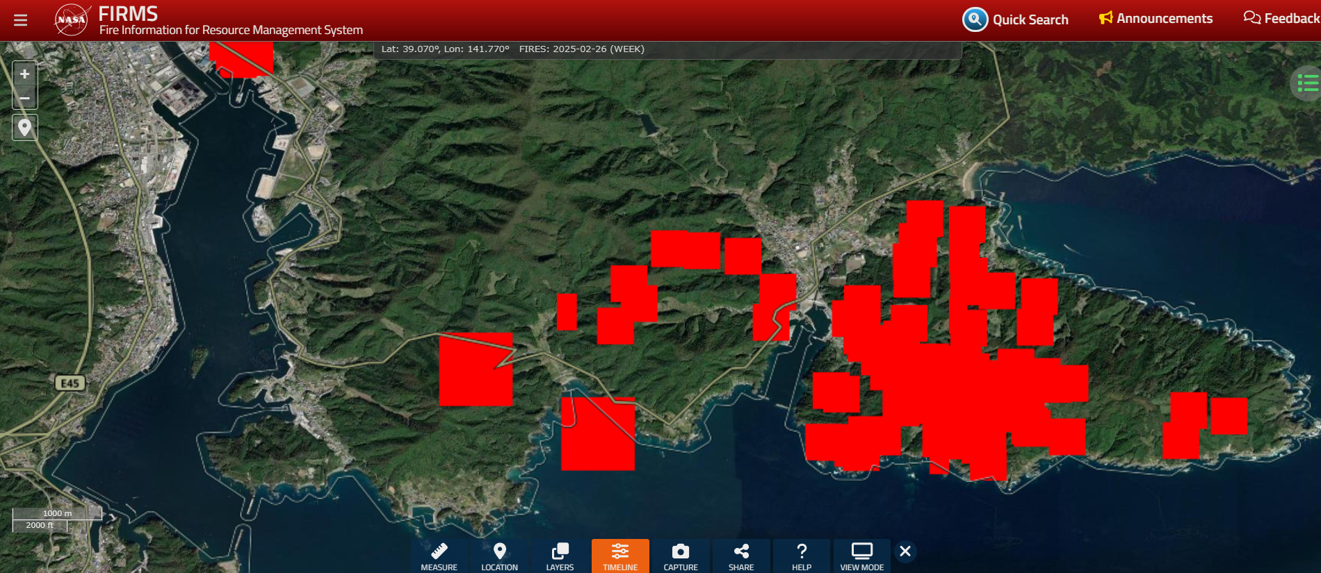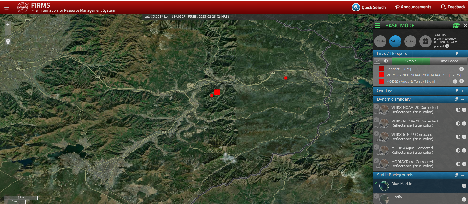 NASA FIRMSによる最新の火災状況は以下のリンクから確認できます。