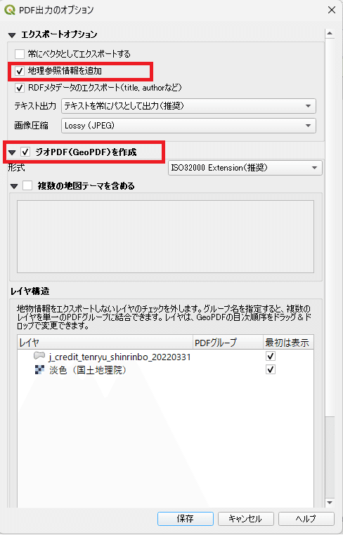 これらのソフトでは、GISデータをレイアウト形式で整理し、地理情報を保持したPDFとして出力できます。特にQGISは無償で利用できるため、Geospatial PDF作成環境として広く利用されています。