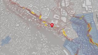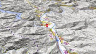 陰影起伏を追加したものです。https://gkukan.net/htdocs/PLATEAU/tokyoto_homukyoku_view5_3.html#13.36/35.07895/137.79261/59.8/60【原田橋】原田橋(はらだばし)は、静岡県浜松市天竜区佐久間町の天竜川に架かる橋です。2代目原田橋は2015年(平成27年)1月31日、土砂崩れ(詳細は後述)により当時建設中の新橋(3代目)とともに落橋しました。このため、2020年(令和2年)2月29日に新橋が供用されました。【陰影起伏】北西の方向から地表面に向かって光を当て、凹凸のある地表面の北西側が白く、南東側が黒くなるよう作成した図です。尾根線、谷線の判別や断層の判読などにご活用いただけます。【土砂災害警戒区域(急傾斜地の崩壊)】https://www.google.com/maps/@35.6319747,139.6026021,3a,75y,352.92h,109.79t/data=!3m6!1e1!3m4!1sKRCzbiD72LvTiblrPsLLJg!2e0!7i16384!8i8192黄色が、土砂災害警戒区域とは、「土砂災害のおそれがある区域」です。赤色が、土砂災害特別警戒区域とは、「建物が破壊され,人命に大きな被害が生ずるおそれがある区域」です。